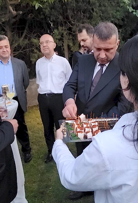 Sade ve Şık Kokteyl Paketi | 200 kişilik organizasyon – 4 çeşit ikramlık: mini börek, tuzlu kanepe, zeytinyağlı yaprak sarma, tatlı kurabiye – Çay ve meyve suyu servisi – 3 garson – Kokteyl masası + örtü + kurulum – Ulaşım ve taşıma dahil | 50.500 TL + KDV |