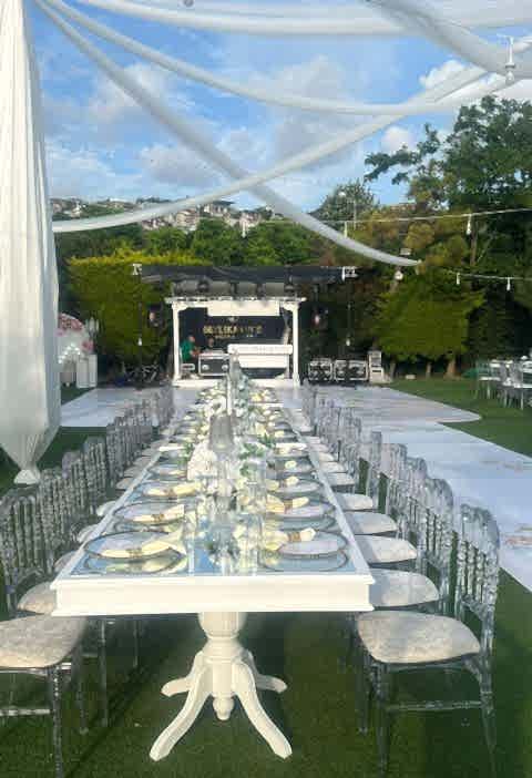 Geçtiğimiz yaz, Yakacık’ta bir villa bahçesinde gerçekleşen düğün organizasyonunda; 10 masa, 100 kişilik yemekli menü, çiçekli masa süslemeleri, trio ekibi ve gece boyunca devam eden ışıklı DJ performansı ile unutulmaz bir geceye imza attık. Her detayı bizim planladığımız bu davette, gelin ve damadın tüm beklentileri fazlasıyla karşılandı.