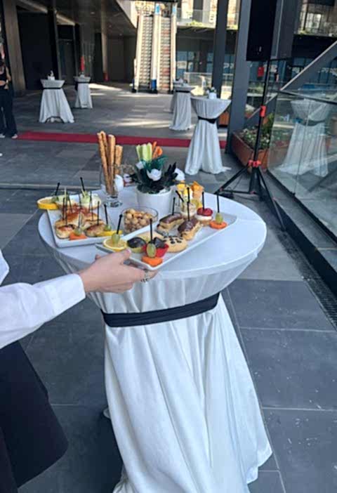Mini atıştırmalıklar, içecek servisi, tatlı-tuzlu sunumlar ve stand içi ikram masalarıyla markanıza yakışan bir atmosfer oluşturur.