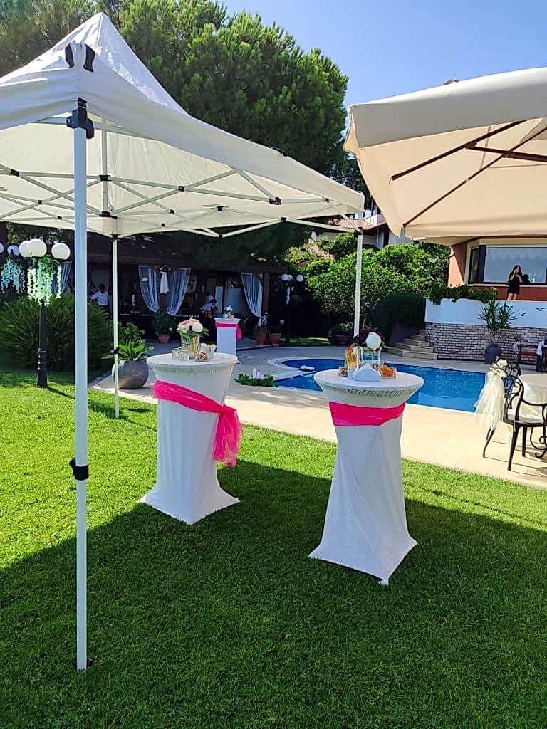 Bistro masa kiralama, örtülü sunum alanları, zarif masa süslemeleriyle birlikte şık bir kokteyl düzeni sağlanır. Misafirlerinize özel olarak hazırlanmış tatlı-tuzlu ikramlar, içecekler, çay ve kahve servisi gibi detaylarla ikram bölümü zenginleştirilir.